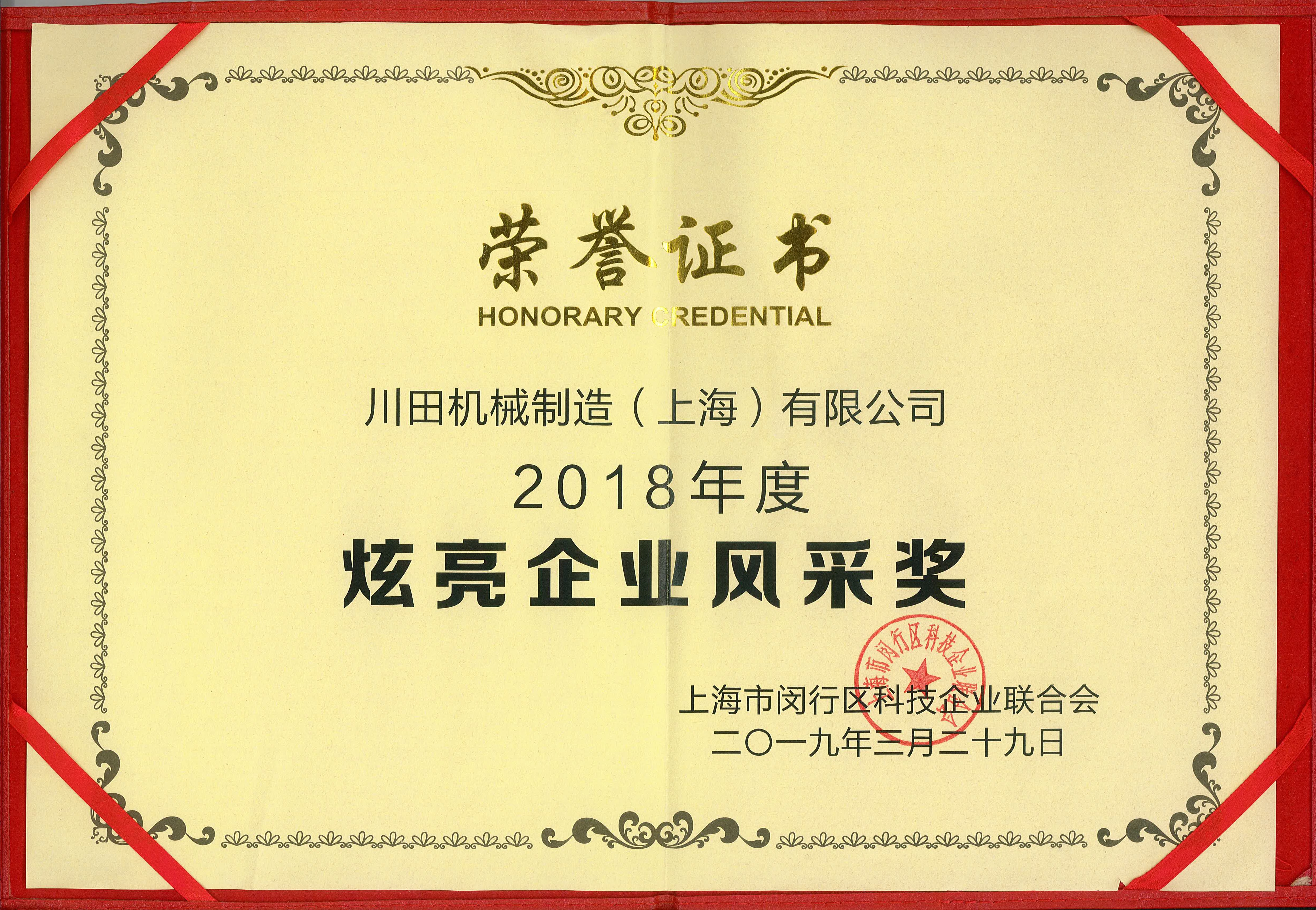 2018年度莘莊工業(yè)區(qū)企業(yè)文化賞証書